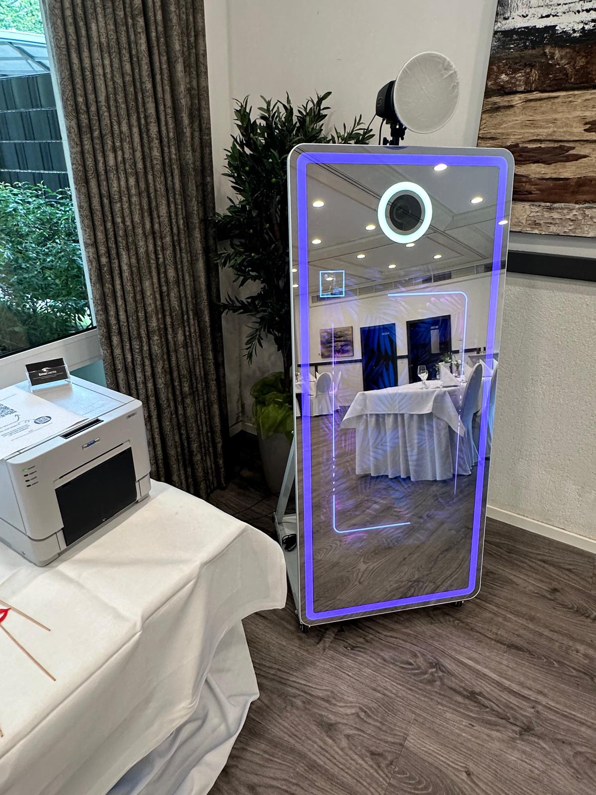 Mit einem Grundpreis von 3.889 €  erhalten Sie ein komplettes System, das sich besonders für die Vermietung auf Hochzeiten, Messen und Gala-Events eignet. Der Fotospiegel überzeugt durch eine elegante Optik, hochwertige Verarbeitung und modernste Komponenten – alles sauber integriert in einem gepolsterten Flightcase mit Rollen.